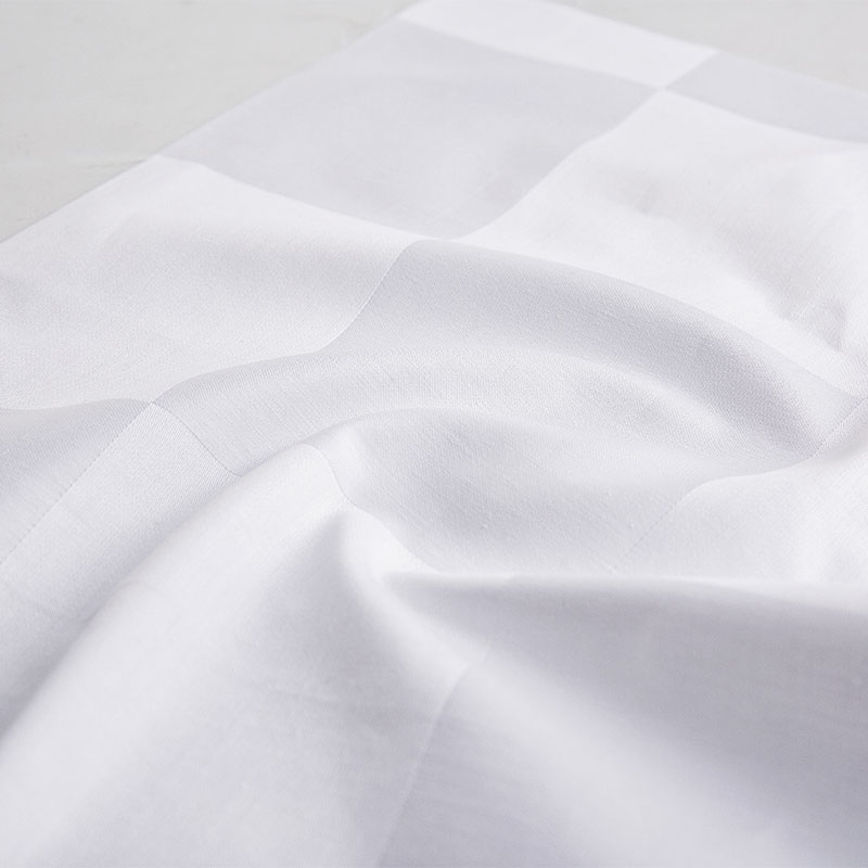Is iondúil go mbíonn patrúin gheoiméadracha simplí agus atmaisféarach, agus ag an am céanna braistint áilleacht a choinneáil. Tá an dearadh cearnógach 9x9cm oiriúnach do stíleanna éagsúla óstáin agus tá sé oiriúnach freisin do ghnáth -theaghlaigh. Bainimid úsáid as abhras cíor agus teicneolaíocht priontála agus dathaithe lánphróiseas iomlán, rud a fhágann gur thit sneachta bán agus silky fabraice. Is é an meascán is fearr de chuma agus de cháilíocht é.
